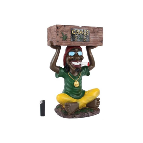 Kendermintás ládát kezében tartó, törökülésben ülő raszta srácot ábrázoló, színes kerámia hamutartó, melynek magassága 44,5 cm. Dekoratív megjelenése miatt a lakás dísze lehet. Különleges hamutál, ami akár ajándéknak is tökéletes választás.