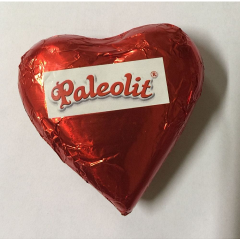 Paleo üreges szív figura étcsokoládéból , hozzáadott cukor nélkül, édesítőszerrel, 30g Összetevők: édesítőszer: maltit (47,5%), kakaómassza, kakaóvaj, emulgeálószerek: napraforgó lecitin, poliglicerin-poliricinoleát, vanília aroma.Nyomokban földimogy