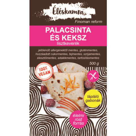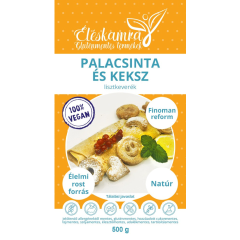 Éléskamra vegan palacsinta és keksz lisztkeverék gluténmentes 500 g Éléskamra Vegán Palacsinta és Keksz lisztkeverék (gluténmentes). 500 g (+/-5g). Elkészítési javaslat 4-5 darab nagyobb palacsintához tojás nélkül vegán módon: mérj ki 125 g Világos pa
