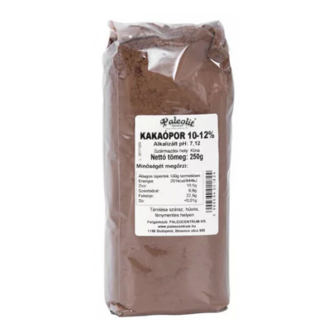 Paleolit Kakaópor 10-12% 250g natúr A kakaó pozitív élettani hatásai:- több mint 300-féle különböző értékes vegyületet tartalmaz - az ásványi anyag és vitaminok bőséges tárháza, gazdagon megtalálható benne a foszfor, a magnézium, a réz és a kálium, val