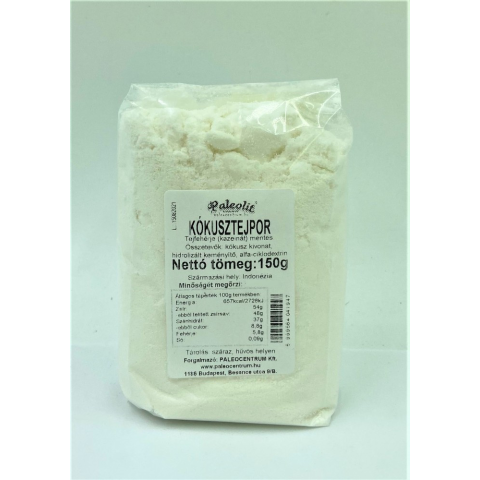 Paleolit Kókusztejpor kazeinmentes 150g Vegán, 54-55% zsírtartalommal Összetevők: kókusztej kivonat, tápióka szirup kivonat, csomósodást gátló anyag: szilícium-dioxid (E551)Felhasználása: sütemények, krémek, desszertek, fagylaltok készítéséhez, valamin