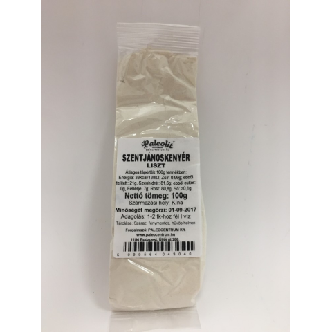 Paleolit Szentjánoskenyér liszt 100g A szentjánoskenyér-liszt (E410) egy élelmiszeripari adalékanyag, melyet a mediterrán térségben élő szentjánoskenyérfa magjából (Ceratonia siliqua L.) állítanak elő. Az élelmiszeriparban térfogatnövelőként, stabilizá