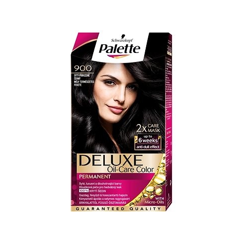 Hajfesték - fekete árnyalat, tartós típus, krém állag, teljes fedést biztosító, színélénkítő és lenövés/ősz hajszál elfedő hatás, minden hajtípusra, 10 hét becsült max. tartósság, kesztyű, applikátor, hajápoló és használati útmutató a csomagban, 50 ml űrtartalom A Palette Deluxe tartós olajos ápoló hajfesték fényűzően gazdag és hosszantartó színt és tökéletes őszfedést biztosít. A gazdag színező krémnek köszönhetően, amely magas koncentrá