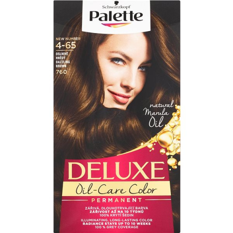Hajfesték - barna árnyalat, tartós típus, krém állag, professzionális termék, teljes fedést biztosító és lenövés/ősz hajszál elfedő hatás, minden hajtípusra, 10 hét becsült max. tartósság, kesztyű, applikátor és hajápoló a csomagban, 50 ml űrtartalom A Palette Deluxe tartós, olajos hajfesték mély és hosszantartó színeredményt, valamint tökéletes őszhajfedést biztosít. A gazdag, magas koncentrációjú színes pigmenteket tartalmazó krémnek köszönhető