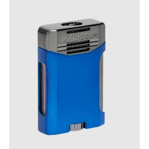 Palió Pro Antares dupla szúrólángos gyöngyház fényű kék és gunmetal színű szivaröngyújtó Palió Pro felirattal. Az erős szúróláng segítségével az öngyújtó még a nagy méretű szivarokat is másodperceken belül meggyújtja. A piezo gyújtást és a fúvókát egy záró fedél védi szennyeződésektől ami automatikusan nyílik. Az öngyújtó oldalán elhelyezett nyomógombot kell megnyomni és rögtön működésbe lép az erős piramis