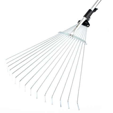 15fogas lomb gereblye 1130mm állítható nyéllel, 200 és 440mm közötti nyitással. 1600mm hosszú alumínium fogantyú, végén gumi fogantyúval. A fogakat a fogantyú mentén csúszó mozgatható hüvelyre rögzítjük, amelyet excentrikus szorítóval rögzítünk bármily