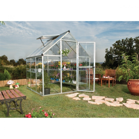 Az új, csúcsminőségű Hybrid termékcsalád üvegházaiban ötvöződik az oldalsó paneleknek köszönhetően, a letisztult és gyönyörű üvegre hasonlító kivitel, a robusztus konstrukció, valamint az egyszerű összeszerelés a tökéletes használati tulajdonságokkal. - A gyakorlatilag törhetetlen csúcsminőségű Palram polikarbonát falak és a kamrás polikarbonát tető biztosítják az üvegházban az optimális hőmérsékletet, és védik a növényzetet a közvetlen napsu