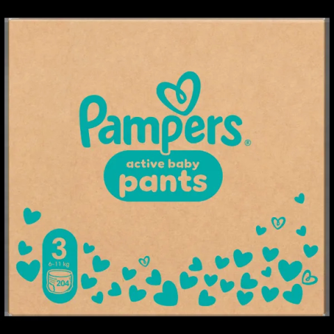 Pampers Active Baby Bugyipelenka - havi pelenkacsomag, Méret 3, 204 Bugyipelenka, 6kg-11kg