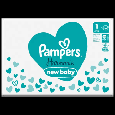 Pampers Harmonie Baby Pelenka - havi pelenkacsomag, Méret: 1, 180 db Pelenka, 2kg-5kg