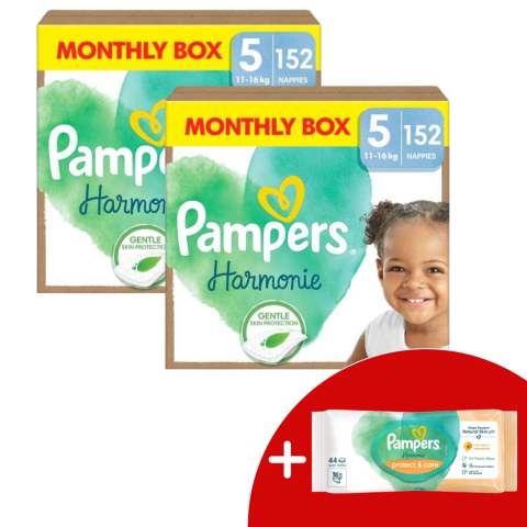 1 kép Pampers Harmonie havi Pelenkacsomag 11-16kg Junior 5 (304db) + Ajándék Törlőkendő