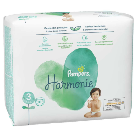 Gyengéd bőrvédelem. Növényi eredetű összetevőkkel. A Pampers Harmonie nadrágpelenka prémium minőségű pamut, puha növényi eredetű rostok és egyéb, gondosan válogatott alapanyagok felhasználásával készül. Bőrgyógyászatilag tesztelt, és kíméletes a kisba...