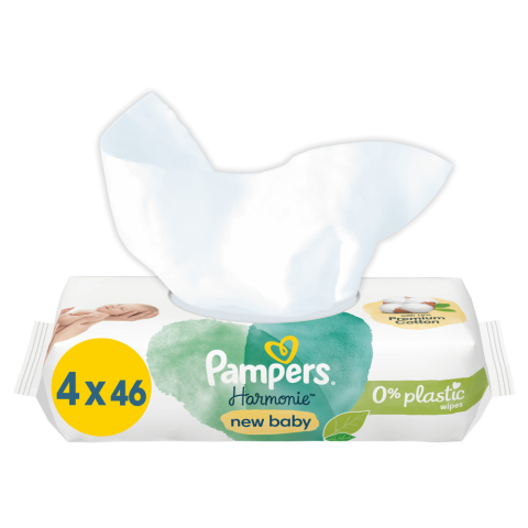 1 kép Pampers Harmonie New Baby Plastic Free műanyagmentes nedves törlőkendő 4x46 db