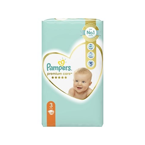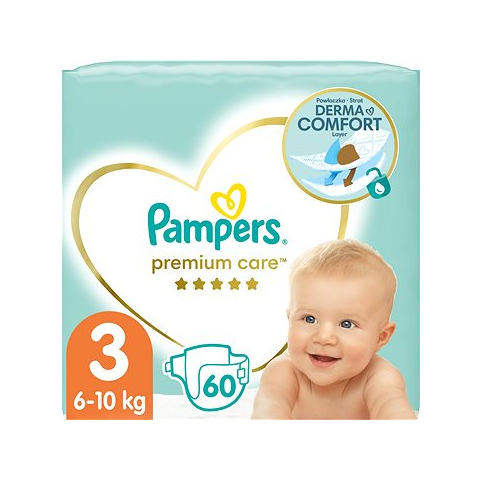 Eldobható pelenka - hagyományos pelenka, méret 3, gyermek súlya 6 - 10 kg, 60 darab a csomagban, nedvességfelszívó csatornák, nedvességjelző, dupla nedvszívó réteg, patentok a méretállításhoz, köldökcsonk kivágás és extra légáteresztő, szivárványos motívum, Pampers Premium Care sorozat Pampers Premium Care pelenkák3-as méret (6-10 kg), 60 dbA babák bőre akár kétszer olyan érzékeny is lehet, mint a felnőtteké, ezért speciális gondoskodást igényel. A Pampe