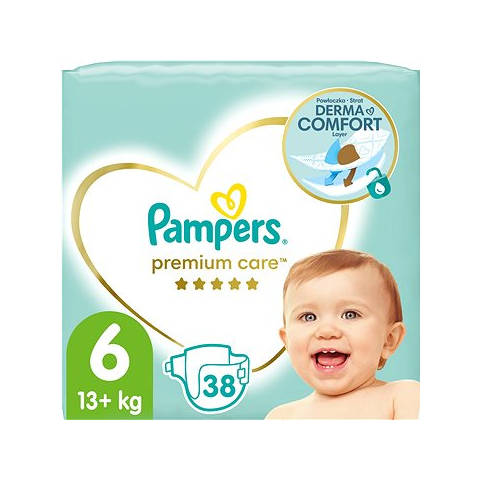 Eldobható pelenka - hagyományos pelenka, méret 6, gyermek súlya 13 - 18 kg, 38 darab a csomagban, nedvességfelszívó csatornák és nedvességjelző, Pampers Premium Care sorozat Pampers Premium Care pelenkák6-os méret (13-18 kg), 38 dbA babák bőre akár kétszer olyan érzékeny is lehet, mint a felnőtteké, ezért speciális gondoskodást igényel. A Pampers Premium Care pelenkák puh
