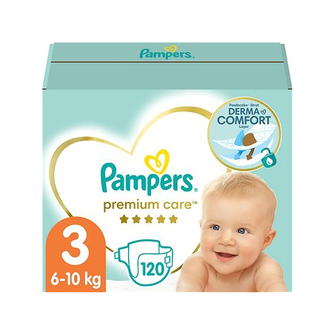 Eldobható pelenka - hagyományos pelenka, méret 3, gyermek súlya 6 - 10 kg, 120 darab a csomagban, nedvességfelszívó csatornák és vízhatlan PUL réteg, állatkás motívum, Pampers Premium Care sorozat Pampers Premium Care pelenkák3-as méret (6-10 kg), 120 dbA babák bőre akár kétszer olyan érzékeny is lehet, mint a felnőtteké, ezért speciális gondoskodást igényel. A Pampers Premium Care pelenkák puh