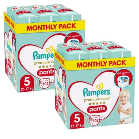 Pampers Premium Care Pants Junior 5 bugyipelenka (11-17 kg) - 204 db a gondtalan napokért! 🚼 Amikor a kisbabád egyre aktívabb, szüksége van egy olyan pelenkára, ami kényelmesen illeszkedik és megbízható védelmet nyújt minden mozdulatnál. A Pampers Pr...
