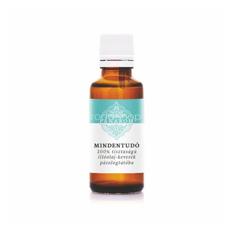 Illóolaj-keverék, párologtatóba, 30 ml, PANAROM Mindentudó Az illóolajkeveréket azoknak ajánljuk, akik szeretnék a teret frissé és üdévé varázsolni, ami egyaránt biztosítja a koncentrációt a tanulás és a munka során felnőtteknek is. A keveréknek a szi
