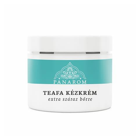 Kézkrém, 50 ml, PANAROM, teafa A Teafa kézkrémet extra szűz olívaolajból, kakaóvajból és kókuszolaj tökéletes házasságából késztettük kifejezetten nagyon száraz bőr gazdag ápolására. A benne lévő orvosi levendula illóolaj gyöngéden és hatékonyan nyugta