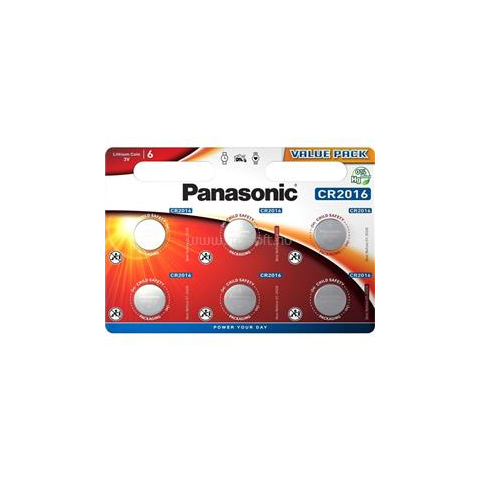 1 kép Panasonic CR2016 3V lítium gombelem 6db/csomag (CR2016L-6BP-PAN)
