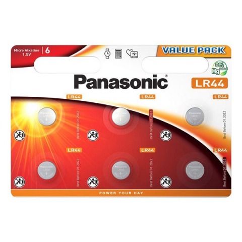 1 kép Panasonic gombelem (LR44EL/6BP, 1.5V, alkáli) 6db / csomag (LR44EL-6BP) (LR44EL-6BP)