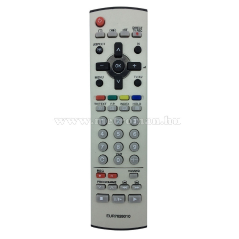 Gyárival megegyező, utángyártott TV távirányító, Panasonic EUR7628010 A TV távirányító az alábbi típusú készülékekhez használható:PANASONIC 28 DK2 TC-15 M1M TC-21 S1M TH-37 PA20 TH-37 PA20A TH-37 PA20B TH-42 PA20B TH-42 PA20E TH-42 PA30E TX
