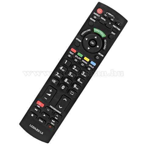 Gyári formájú, után gyártott, univerzális LCD és LED TV távirányító kimondottan Panasonic típusokhoz. Helyettesíti a legtöbb Panasonic Plazma, LCD és LED TV távirányítóját, valamint egyes Panasonic DVD és Videókhoz is használható. Nem kell programozni !