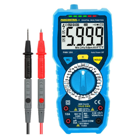 Multiméter digitális, professzionális True RMS PAN 184 Pancontrol***(Egyenfesz.: 0,1V-1000V, Vált. fesz.: 1mV-750V, Egyenáram: 0,01 µA - 10 mA, Vált.áram: 10 µA - 10A, Ellenállás: 0,1 ohm - 60 Mohm , Frekv.:0,001 Hz - 10 MHz, Kap.: 1 pF - 100 mF, Pont