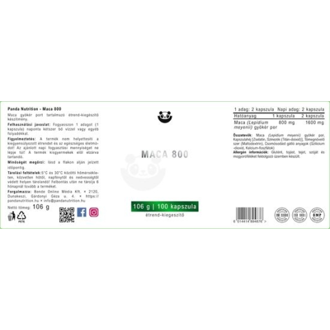 Panda Nutrition Maca X8 [100 kapszula] vitamin és táplálékkiegészítő 1 kép