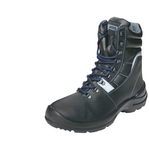 Lábujjvédő nélküli, gyapjúval melegen bélelt téli magasszárú munkabakancs, oldalán és sarkán fényvisszaverő csíkkal. Felsőrésze mérsékelten vízlepergető bőrből készült. Talpa olaj és üzemanyagálló anyagból készült. Meleg bélésű, lábujjvédelem nélküli