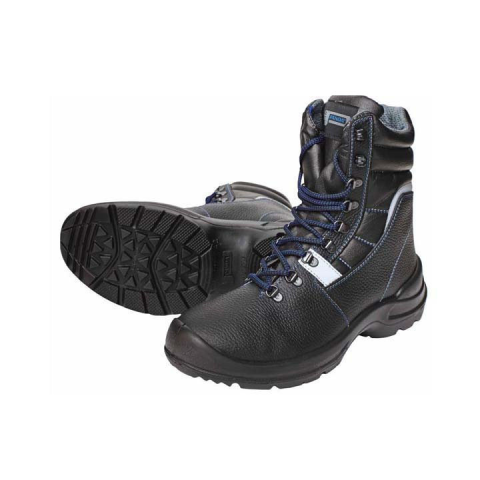 Téli bélelt bakancs, szabadban végzett munkáhozMeleg bélésű vízálló magasszárú munkavédelmi bakancs orrmerevítő nélkül, antisztatikus, csúszásbiztos, sav- és olajálló PU/PU talp, energiaelnyelő sarok, lélegző bőr felsőrész és fényvisszavető elemek a látha