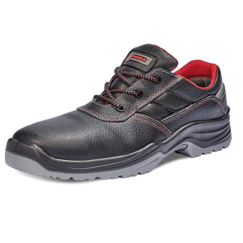 Letisztult fazonú munkavédelmi félcipőBiztonsági munkavédelmi cipőKompozit lábujjvédővelTextil átszúrás elleni köztappal.Antisztatikus, csúszásbiztos PU/TPU talpEnergiaelnyelő sarokFelsőrész vízlepergető bőrMéret: 36-47Szín: feketeKiváló minőségű Olasz gy