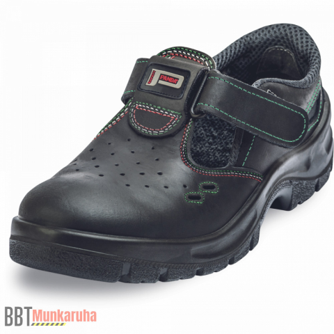 Biztonsági szandál O1 SRC minősítéssel • Magas minőségű fekete nubuk bőr felsőrész, erős három soros varrás. Megbízható tépőzáras kivitel. • Energiaelnyelő sarok, szivaccsal párnázott boka. • A talpbetét, nemszövött anyaghoz illesztett nemez, anti-mikrobi