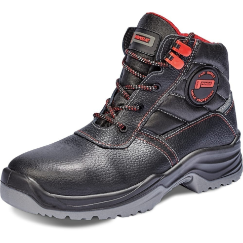 S3 védelmi képességgel rendelkező, mérsékelten vízlepergető bőr felsőrésszel készült fémmentes munkavédelmi bakancs. Orrában kompozit lábujjvédővel, talpában textil átszúrás elleni hajlékony köztalppal. Sarokrésze energia elnyelő. Belső bélésének köszönhe