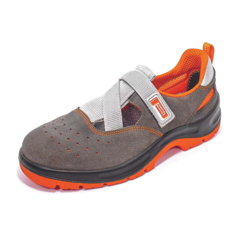 Munkavédelmi szandál a mindennapos kényelem biztosítására Biztonsági szandál acél lábujjvédővel. Dupla sűrűségű poliuretánból készült antisztatikus külső talppal amely kopás- és olajálló, csúszásgátló tulajdonságokkal rendelkezik. A felsőrész természetes