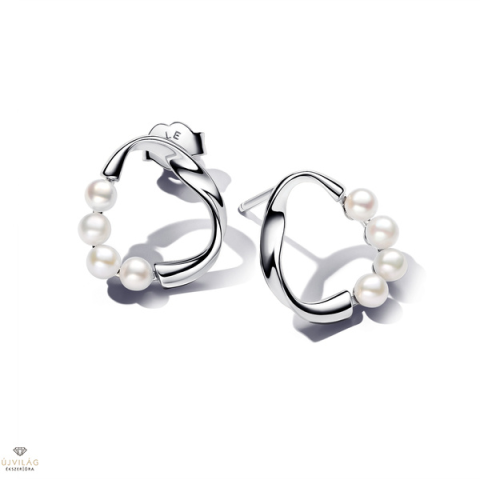 1 kép    Pandora édeesvízi tenyésztett gyöngyös organikus karika fülbevaló - 293276C01