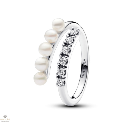 1 kép Pandora édesvízi tenyésztett gyöngyös pavé nyitott gyűrű 54-es méret - 193145C01-54