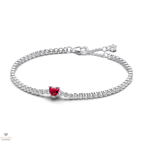 1 kép Pandora piros szíves tennis karkötő 16 cm-es - 590041C02-16