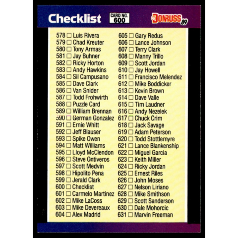 1 kép Panini 1989-1990 Donruss #600 578-660