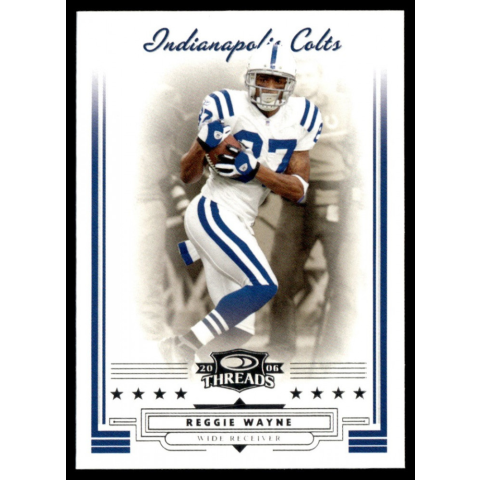 Az eladásra kínált 2006 Donruss Threads #52 Reggie Wayne nfl, amerika focis kártya NM-MT állapotban van. A focis kártyákat legtöbb esetben UP Platinum/Standard puha védőtokban és/vagy UP Toploader (kemény védőtok)-ben küldjük. Az eladásra kínált 2006