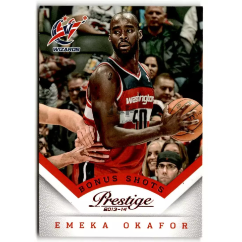 Játékos: Emeka OkaforKiadás éve: 2013-14Gyártó: PaniniSzett: PrestigeKártya szám: #60Változat(parallel): Bonus Shots RedCsapat: Washington WizardsÁllapot: normál, NM-MTBV(Katalógus érték): $2Minden kártyát kártyédő fóliában (bugyiban) küldünk de lejjebb t