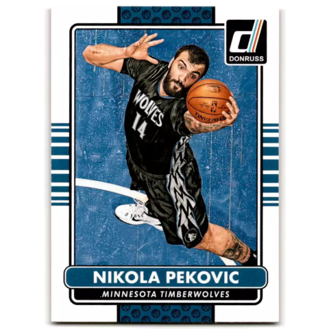 Játékos: Nikola PekovicKiadás éve: 2014-15Gyártó: PaniniSzett: DonrussKártya szám: #49Változat(parallel): baseCsapat: Minnesota TimberwolvesÁllapot: normál, NM-MTBV(Katalógus érték): $ Minden kártyát kártyédő fóliában (bugyiban) küldünk de itt fent t
