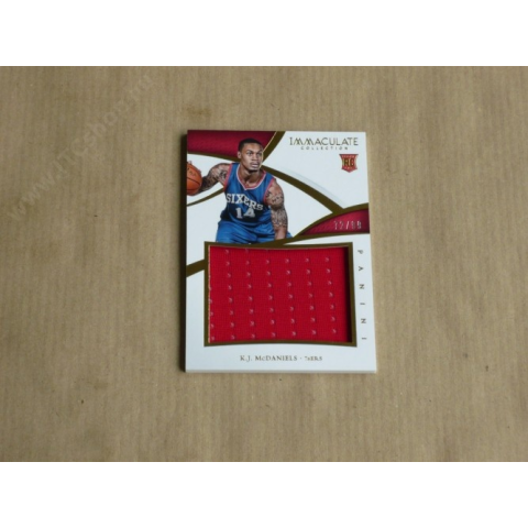Az eladásra kínált 2014-15 Immaculate Collection Rookie Jerseys #4 K.J. McDaniels kosaras kártya NM-MT állapotban van. A kosaras kártyákat legtöbb esetben UP Platinum/Standard puha védőtokban és/vagy UP Toploader (kemény védőtok)-ben küldjük. Az eladás