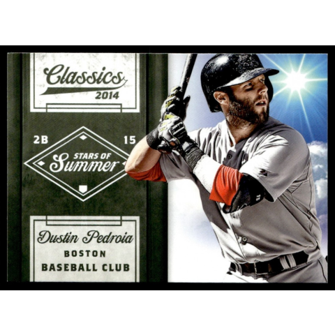 Az eladásra kínált 2014-2015 Panini Classics Stars of Summer #13 Dustin Pedroia baseball kártya NM-MT állapotban van. A baseball kártyákat legtöbb esetben UP Platinum/Standard puha védőtokban és/vagy UP Toploader (kemény védőtok)-ben küldjük. Az elad