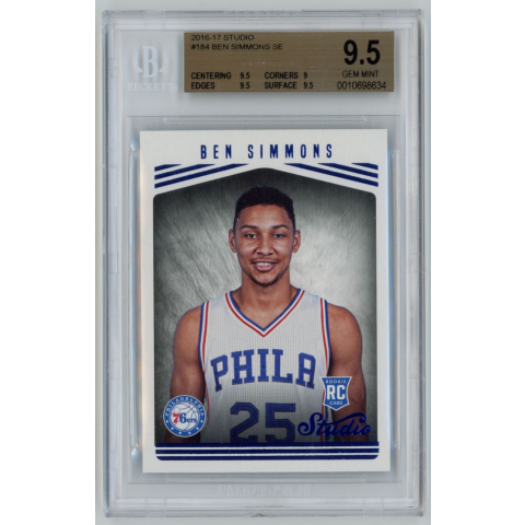 Az eladásra kínált 2016-06 Panini Studio BGS - 9.5 Gem Mint #184 Ben Simmons kosaras kártya NM-MT állapotban van. A kosaras kártyákat legtöbb esetben UP Platinum/Standard puha védőtokban és/vagy UP Toploader (kemény védőtok)-ben küldjük. Az eladásra k