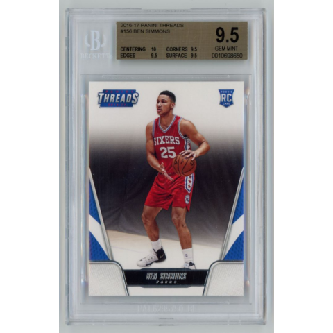 Az eladásra kínált 2016-06 Panini Threads BGS - 9.5 Gem Mint #156 Ben Simmons kosaras kártya NM-MT állapotban van. A kosaras kártyákat legtöbb esetben UP Platinum/Standard puha védőtokban és/vagy UP Toploader (kemény védőtok)-ben küldjük. Az eladásra