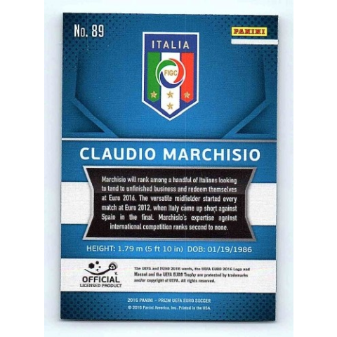 1 kép Panini 2016 Panini Panini Uefa Euro Prizm Base #89 Claudio Marchisio