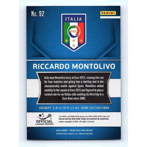1 kép Panini 2016 Panini Panini Uefa Euro Prizm Base #92 Riccardo Montolivo