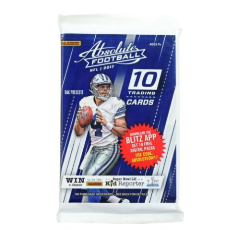 1 CSOMAG 10 KÁRTYA/CSOMAG 10 KÁRTYA ÖSSZESEN A 2017 Absolute Football retail csomag tartalma: 10 NFL kártya/csomag! Keresd a véletlenszerűen elhelyezett aláírt kártyákat Rookie játékosok: Mitchell Trubisky, Patrick Mahomes, Deshaun Watson,