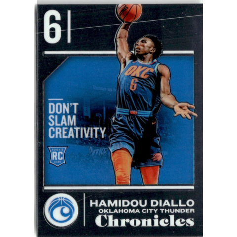 Az eladásra kínált 2018-19 Panini Chronicles #513 Hamidou Diallo kosaras kártya NM-MT állapotban van. A kosaras kártyákat legtöbb esetben UP Platinum/Standard puha védőtokban és/vagy UP Toploader (kemény védőtok)-ben küldjük. Az eladásra kínált 2018-