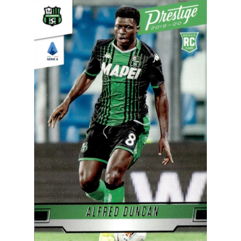 Az eladásra kínált 2019 Panini Chronicles Prestige Xtra Points Blue #296 Alfred Duncan focis kártya NM-MT állapotban van. A focis kártyákat legtöbb esetben UP Platinum/Standard puha védőtokban és/vagy UP Toploader (kemény védőtok)-ben küldjük. Az ela